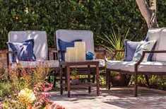 If you can’t find a matched set, look for patio pieces that have similar lines and materials to create a cohesive look and feel