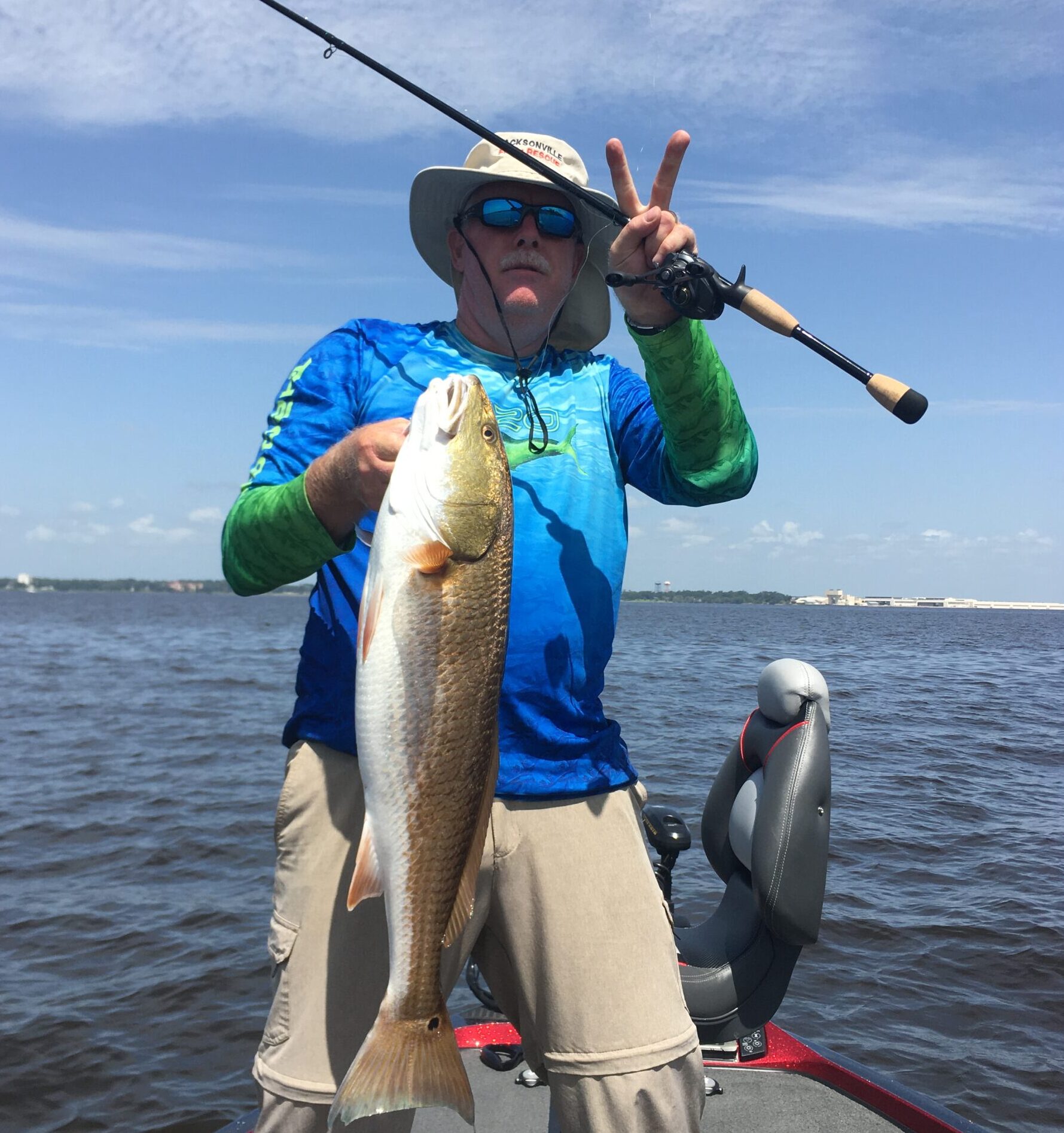 Andrew White caught these two redfish north of the Buckman Bridge near Beauclerc using a white strike king spinner bait. One was 34” and the other 30”. Both fish were released with no issues.