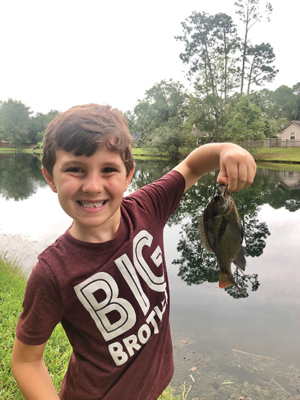 Brady Baiocco, age 5, caught a panfish in Fruit Cove.