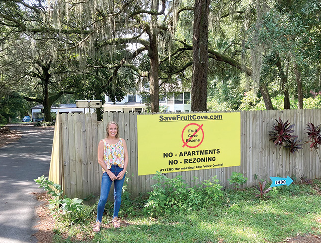 News spread quickly the first week of September in the NW St. Johns County area of Fruit Cove about RISE Development’s proposal to build a multi-level apartment complex on Fruit Cove Road. Currently zoned OR (Open Rural), a rezoning would have to be granted by the county for this development to take place — but neighbors are clear in their desire for no rezoning to occur. A Facebook group (Save Fruit Cove), a website (www.savefruitcove.com), a petition at Change.org, as well as a planning meeting to organize and assign duties were accomplished within a week.