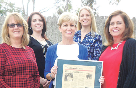 Creative director Julie Gerona, marketing rep. Heather Seay, editor Martie Thompson, office manager Emily Whitehead and original marketing rep. Linda Gay with the very first issue of The CreekLine.