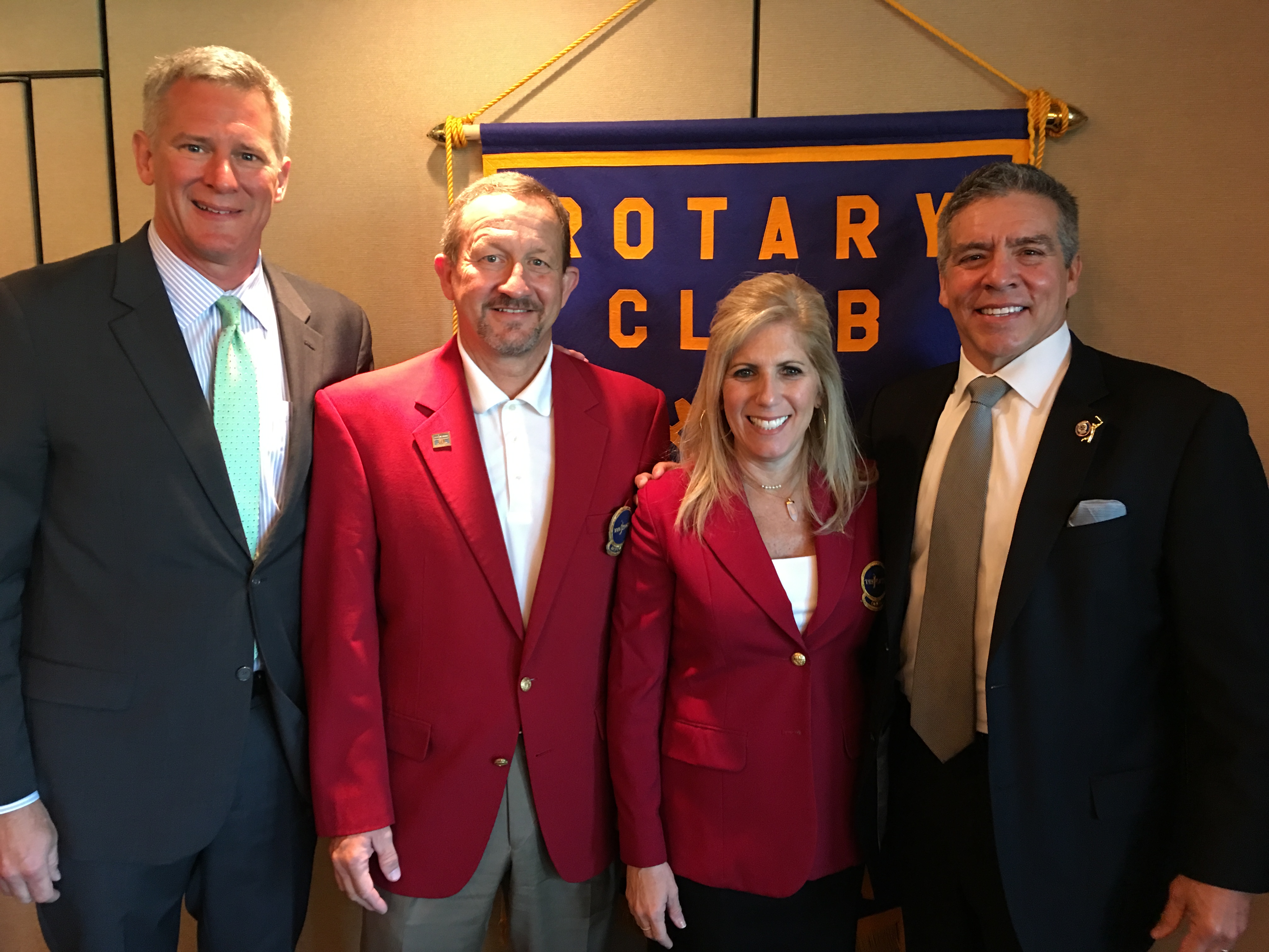 Matt Rapp (executive director of The Players Championship), Jack Garnett (2002 chairman) and Michele McManamon (2016 chairman) joined club president Will Montoya for a meeting of the Rotary Club of Ponte Vedra Beach on April 7.