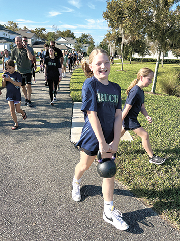 For the Ruck St. Johns, participants warmed up with Coach Colin Woodmansee of Training For Warriors at 8:45 a.m. and then began the ruck at RiverTown Amenity Center at 9 a.m. Nearly 80 people of all ages participated in the ruck, which followed a 3.25 mile course through RiverTown.