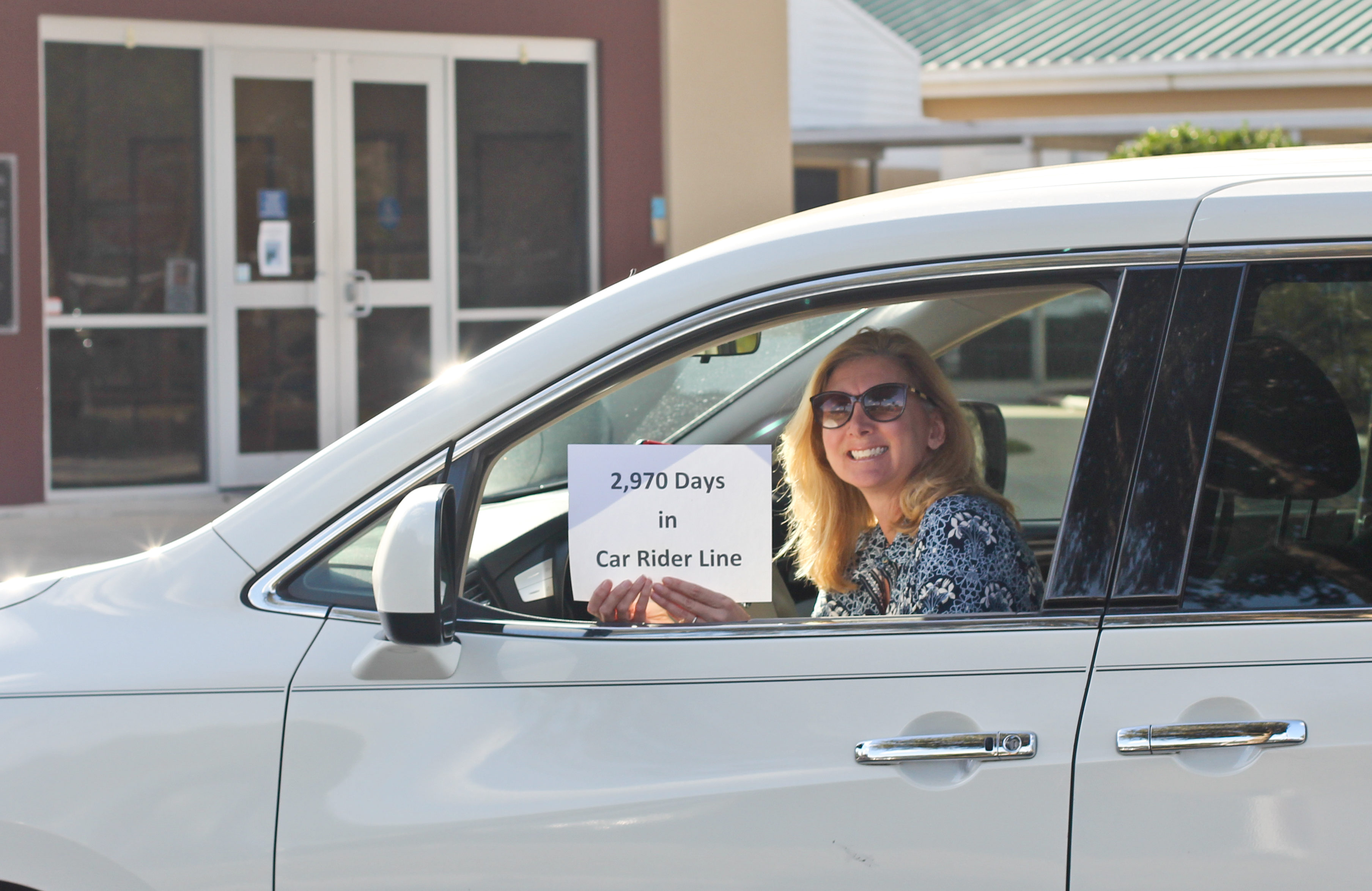Jennifer Vorburger has some fun during her time in the car line.