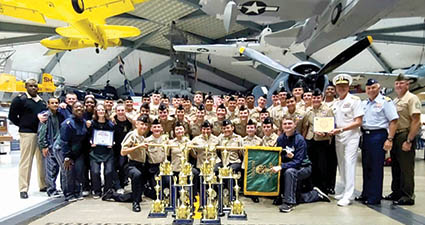 Nease’s drill team celebrates with RADM Peter Garvin following the Navy National Academic, Athletic and Drill Championships in Pensacola.