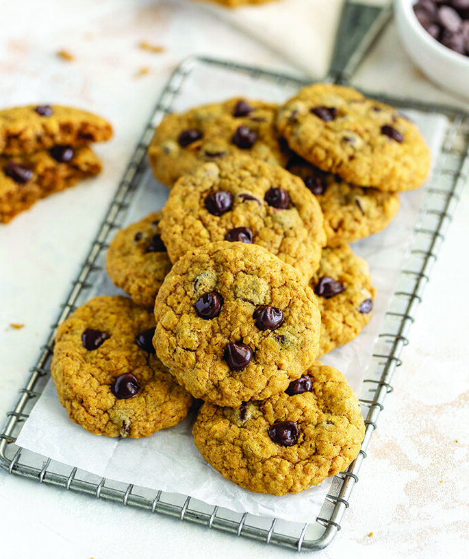 Flavor, versatility and health benefits are some reasons to enjoy oatmeal, especially when preparing baked goods like cookies. Enjoy “Pumpkin Chocolate Chip Oatmeal Cookies” from “Live Well, Bake Cookies” (Rock Point) by Danielle Rye.
