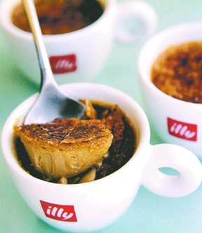 Just before serving, sprinkle 1/2 teaspoon of sugar evenly overtop each custard. Use a small blowtorch to caramelize the sugar. Alternatively, place cups 1 inch below oven broiler under a watchful eye for approximately 2 minutes, or until sugar caramelizes.