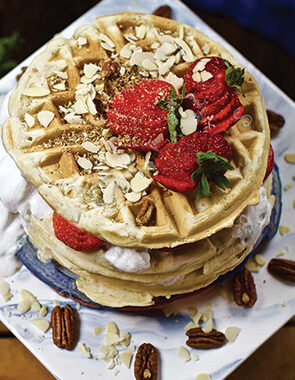 Tip: Add freeze-dried berries, whole or powdered, or even blue spirulina or pitaya powder to get colorful waffles with fruity flavors and even a bit of crunch. Alternating colors of waffles is fun, nutritious, and festive.