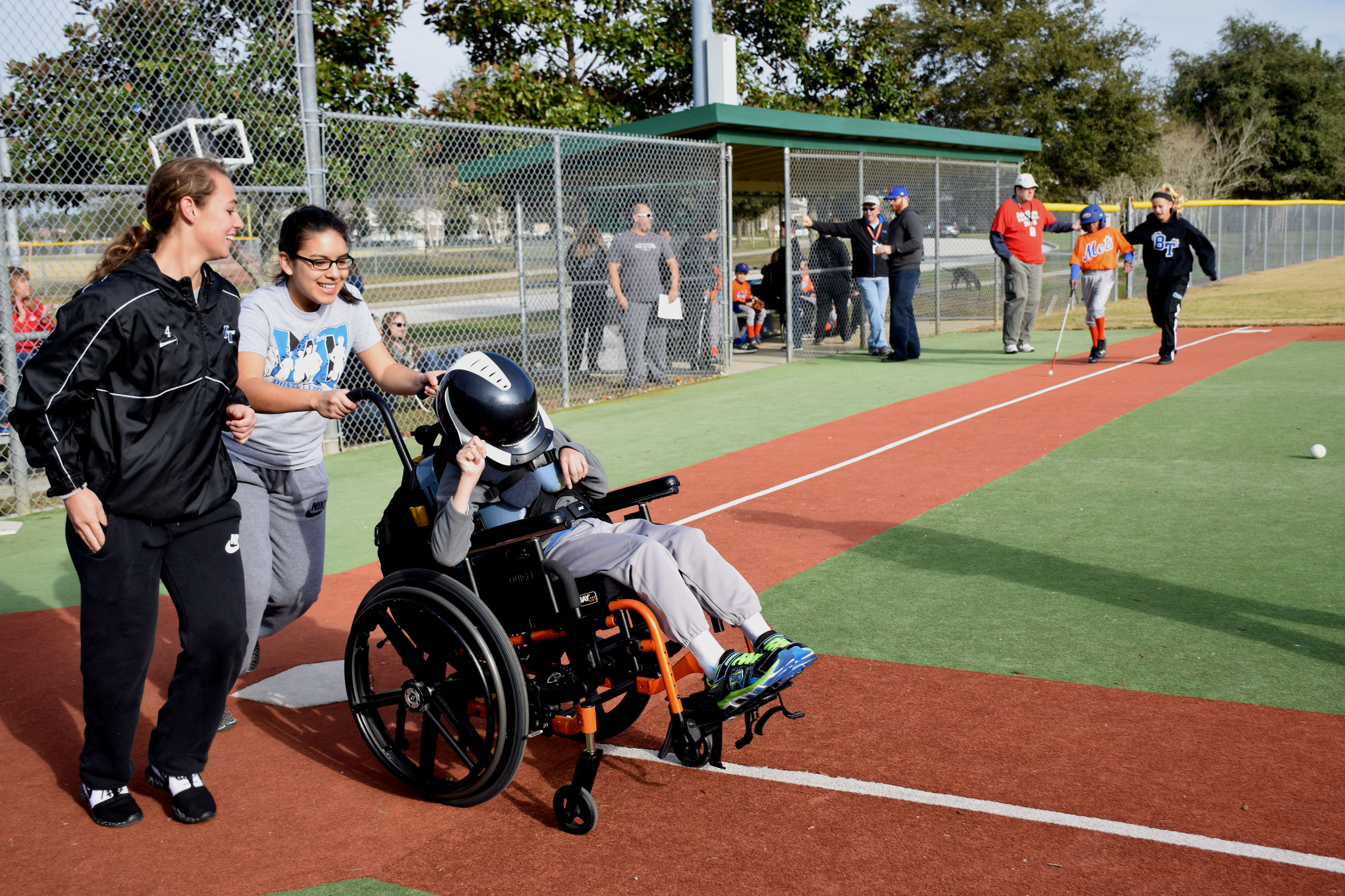 On Saturday, Feb. 6, one hundred thirty-two of those children got to put on a uniform and play as a member of an organized baseball team. Paired with students from Bartram Trail High School, they were able to run around the bases, hit the ball, smile and even slide into home if they felt like it.