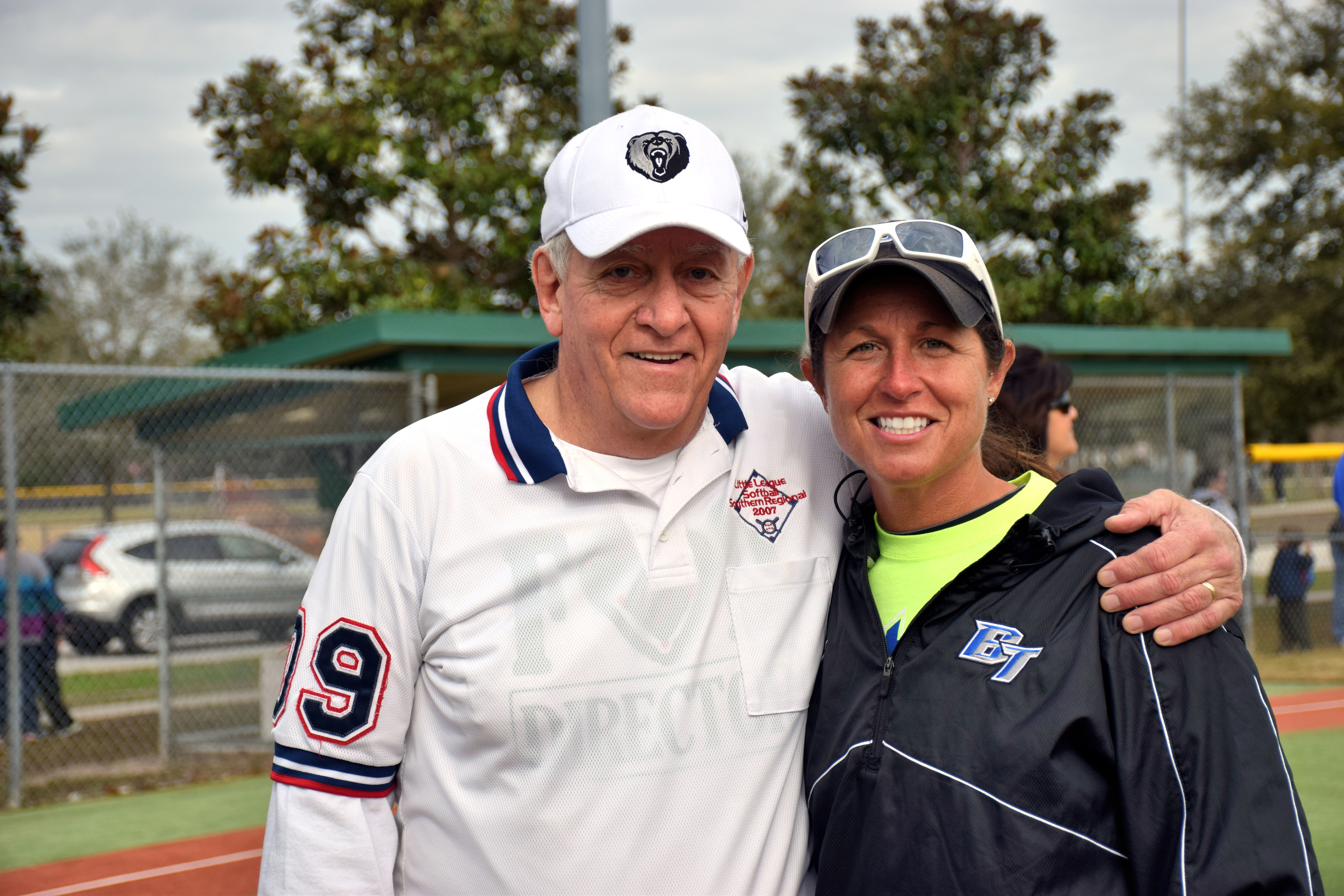 George Vancore and Bartram Trail High School varsity softball coach Jen Harman at the Field of Dreams opening day, Feb. 6.