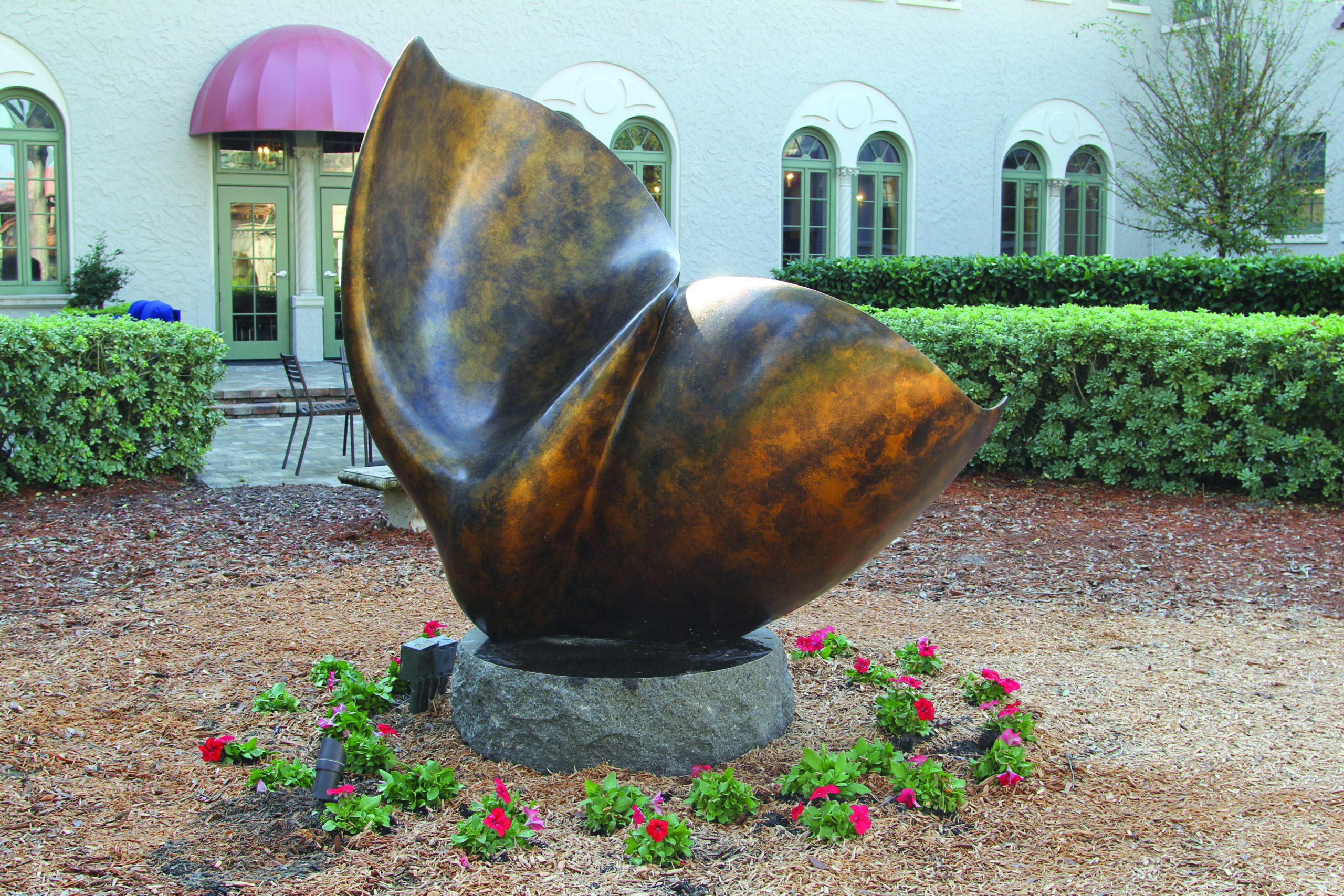 The Bolles Reflection Garden on the Upper School San Jose Campus is now home to a sculpture created and donated by Gordon Gund, a successful businessman, investor and prominent philanthropist who has generously supported The Bolles School in memory of his late wife Llura “Lulie” Liggett Gund ’58 Bartram.