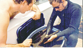 Lee Manley and Keith Holland examining a recovered “Maple Leaf” artifact.