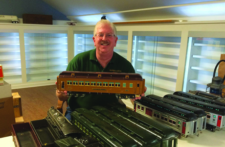 Steve Johnson shows one of his Lionel O-gauge in his specially-built train room.