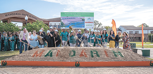 “This is a beacon of progress for Mandarin High School,” said School Board member Dr. Lori Hershey at the groundbreaking on March 13. “It addresses critical needs for additional classroom space and state- of-the- arts facilities to advance culinary arts and the medical arts here at Mandarin High School. Investing in Mandarin today is clearly an investment that will benefit students and our community.”