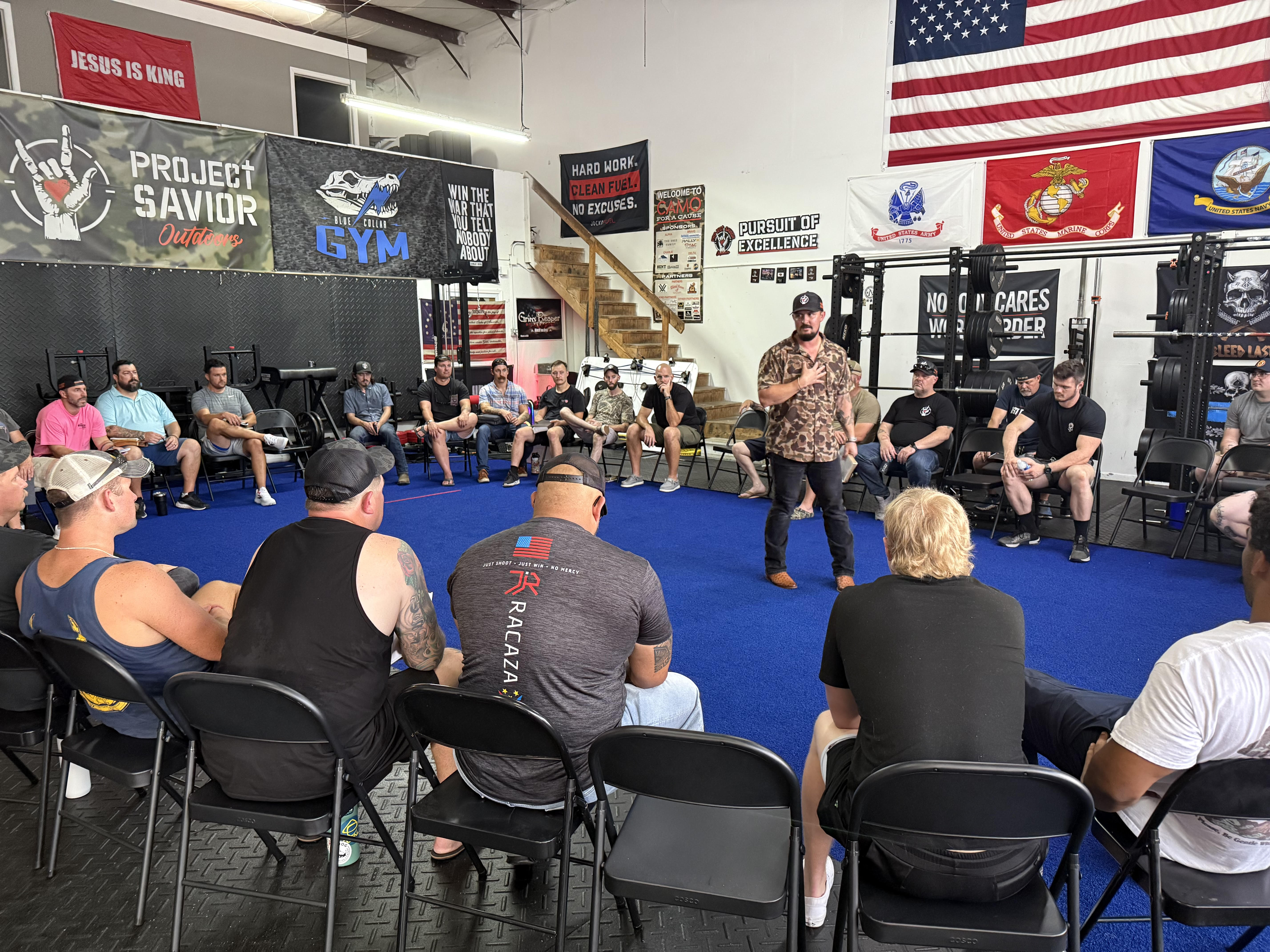 At around 6 p.m., the workout mats are rolled up and chairs are arranged in a large circle for a 15-minute prayer and talk led Tavarez, who uses a disciple group curriculum created by the Church of Eleven22, based in Jacksonville. After that, the men break into small group discussions.