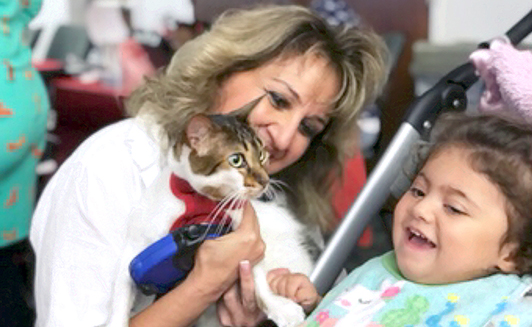 Lorri Reynolds would be the first to admit that she is a “glorified chauffeur” for her therapy cat Sooshi and that the American short-hair feline is a well-known celebrity. And that is just the way Reynolds, Pet Partners of Northeast Florida board chair, likes it.