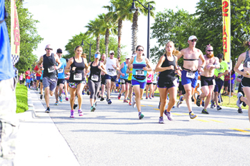 The 5k, 10k, and one mile fun run all start and finish together and along the same course. The one mile fun run route will turn back at the half mile point, while the 5k and 10k continue along the route. The 5k route will turn around at the 2500 meters and return to the finish, while the 10k will continue. Both the 5k and 10k courses are certified with United States Track and Field (USTAF), allowing them to serve as qualifier races for other races with time entry/seeding requirements, including the Gate River Run.