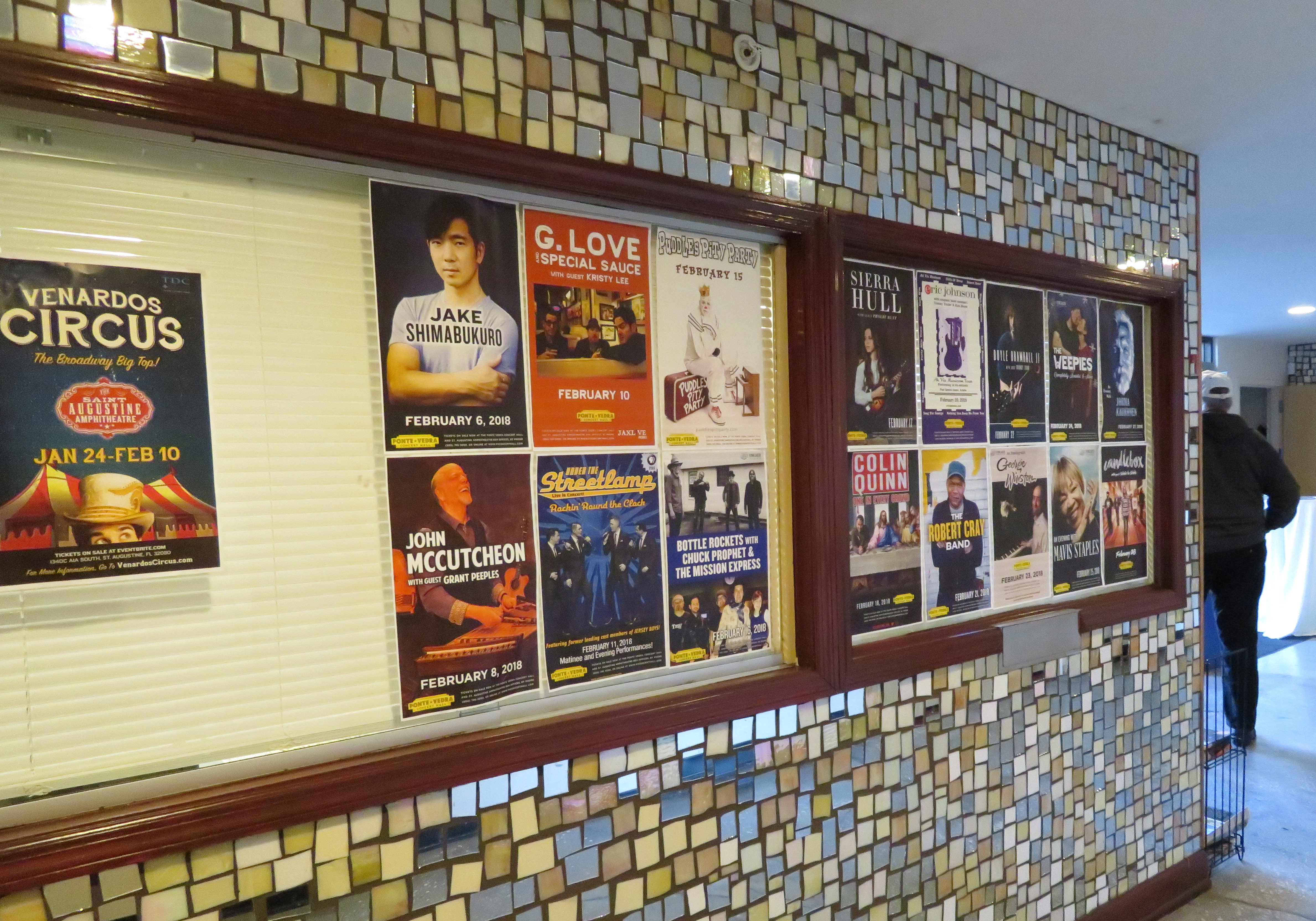 Posters show upcoming events at the Ponte Vedra Concert Hall.
