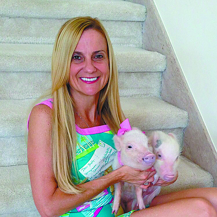 Nicholson has written two children’s books with Prissy and Pop as the main characters. The books, “Prissy and Pop: Big Day Out” and “Prissy and Pop Deck the Halls,” are available locally and via online retailers including Amazon. Nicholson also maintains The Prissy and Pop Shop, offering toys and other merchandise for purchase. Although a bit overwhelming at times, Nicholson enjoys the adventures of having such popular and adorable pigs for pets.