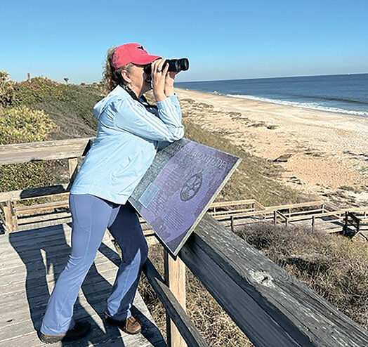 Team 1 North, which was created in 2022, covers the beaches of Mickler’s to Vilano, a sector that spans about 22 miles and includes seven to 12 stops or watch/elevated observation points. That stretch of beach contains an important migration lane for the whales who are on the move in search of warmer waters, primarily from January to March. Shea L. noted that these mothers will travel all the way from Canada, a total of 1,500 miles, just to have their babies here. Volunteers look, survey, and record data during this time in hopes of protecting the Right Whale which tends to be elusive in nature and dwindling in numbers.