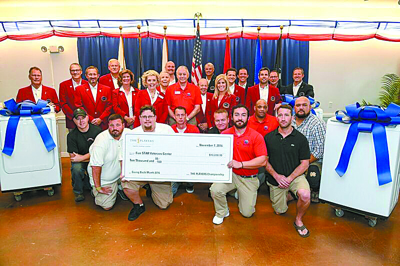 Monday, Nov. 7 was a day of celebration at the Five Star Veterans Center in Jacksonville. A large group of Red Coats (volunteer leaders of THE PLAYERS) wheeled in brand new beribboned washers and dryers and then presented the staff and residents with a check for $10,000, all of this in addition to the $5,000 grant already received from THE PLAYERS Championship this year.
