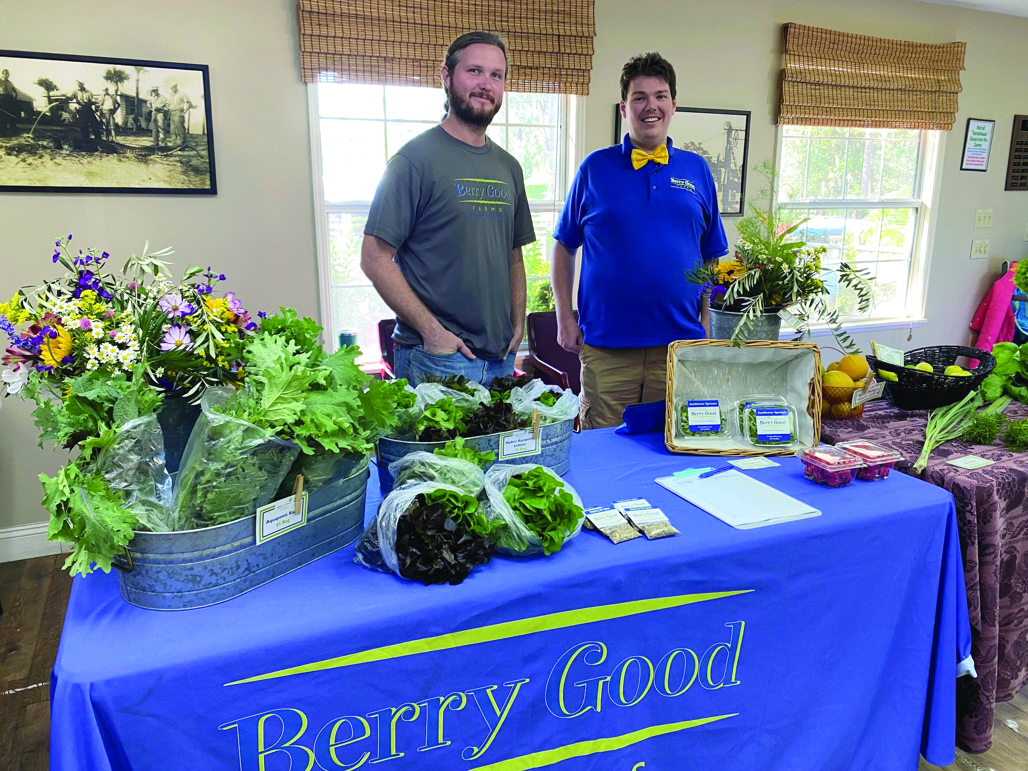 Smith is a marketing assistant and a North Florida School of Special Education (NFSSE) graduate. Berry Good Farms is run from the NFSSE’s campus, using hydroponics, aquaponics and raised beds. Every week, Smith, along with Berry Good Farms manager Jordan Williams, brings lettuce, pea sprouts, herbs, radishes, flowers and other organic fruits and vegetables to sell at the market.