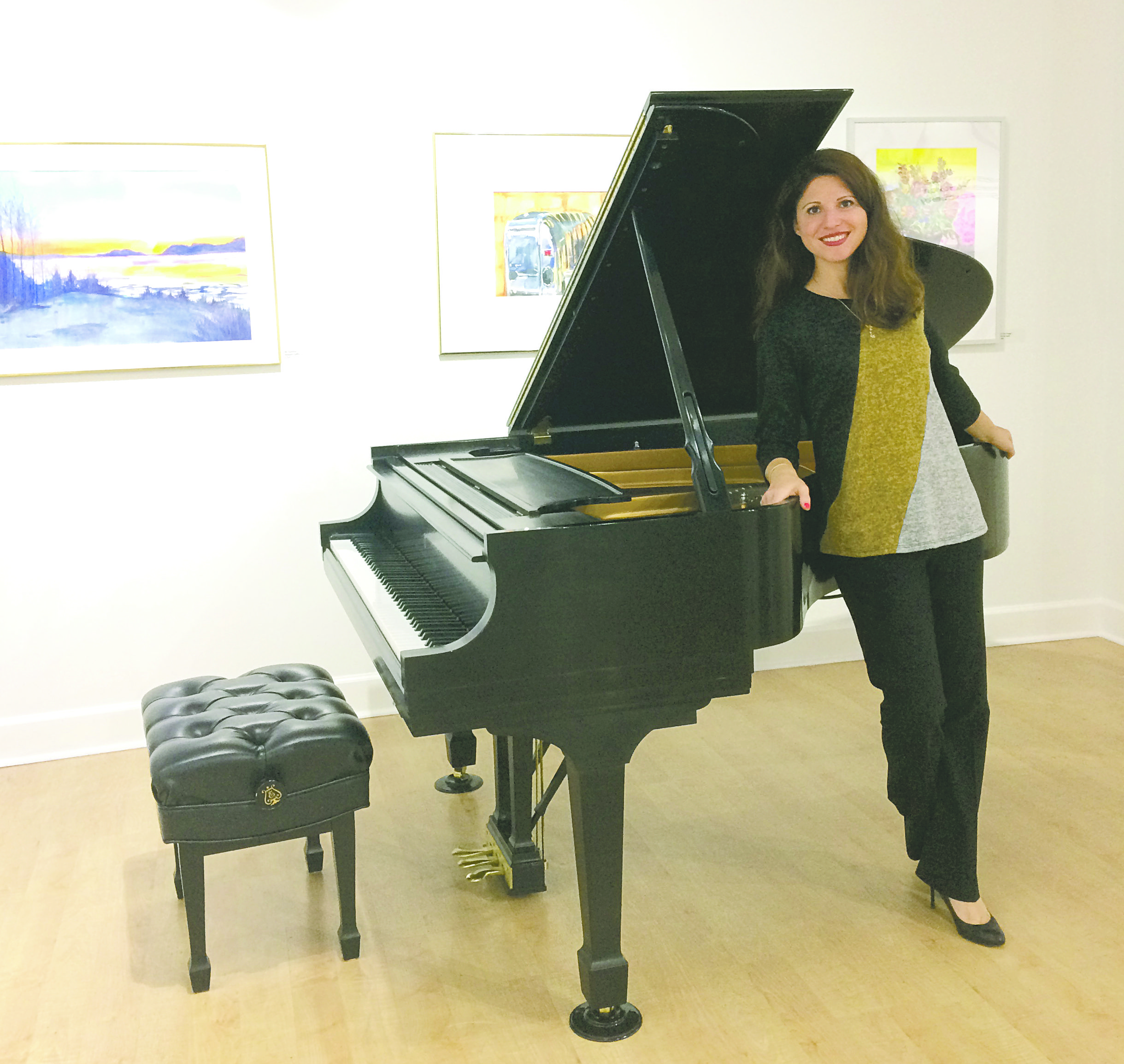 Arjola Miruku with the new Steinway Grand at The Cultural Center at Ponte Vedra Beach.