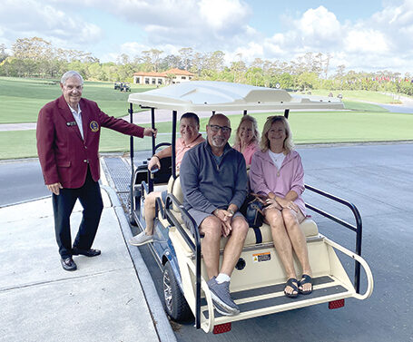 When visitors from Missouri and Massachusetts visited Ponte Vedra Beach one recent day, volunteer storyteller Tobey Jones gave them a free tour of the TPC Clubhouse, followed by a golf cart ride out to holes 16, 17, and 18 of the Stadium Course.