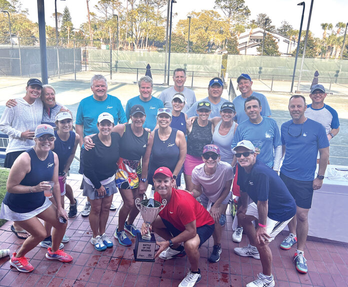 On Saturday, Feb. 25, Sawgrass hosted the first “Battle of the Beaches” tennis event. Ponte Vedra Inn & Club  and Sawgrass Country Club battled for the championship trophy with five lines of doubles in men’s and women’s tennis, along with three lines of mixed doubles for a total of 13 matches. Each match win counted as one point for the team total.
