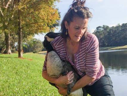 Valerie Hale rescuing a Canada Goose trapped in tangled fishing line. The rescue took place about two months ago in Julington Creek.