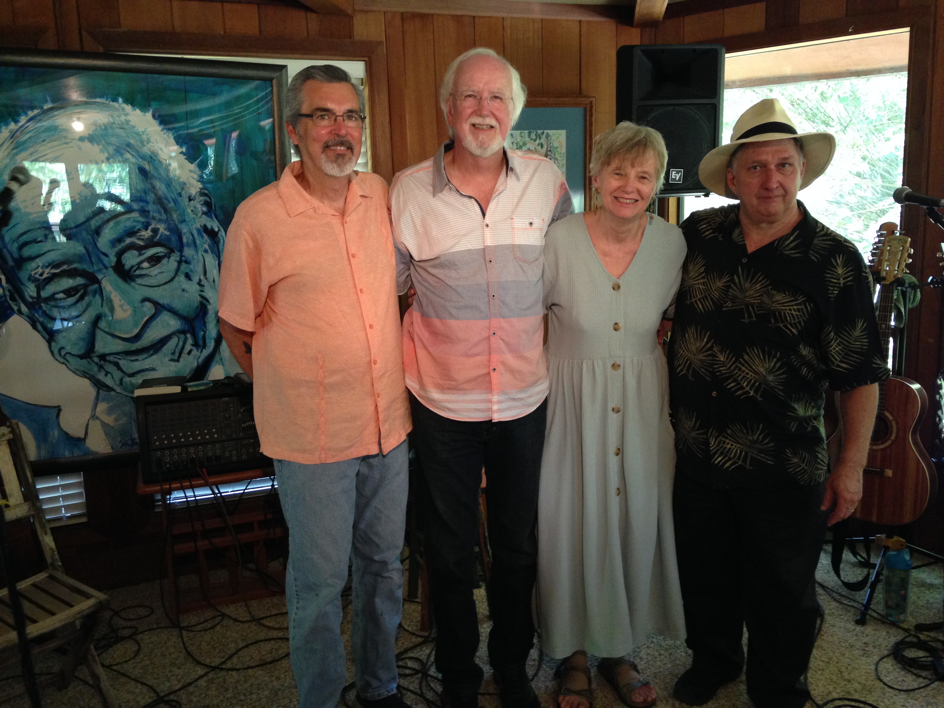 Second Sunday at Stetson’s, June 12, 2016: Paul Garfinkel, Larry Mangum, Sandra Parks and Al Poindexter (with Stetson Kennedy portrait by graffiti artist Chip Southworth)