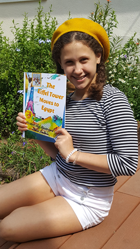 A: So basically, my best friend Luci (who is actually a real person) and I open a bakery in the Eiffel Tower with our French bulldog, Chubby Cupcake — who I wish was real, but sadly, he’s not. We get some complaints about the Eiffel Tower looking like an Egyptian pyramid, so we end up moving it to Egypt after talking with the president and Mr. Eiffel himself. And after that, a lot of chaotic stuff starts happening. It’s just a funny book that’s good for kids aged five to 10.