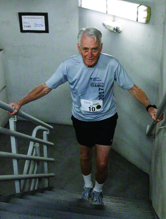 Jack Avery is celebrating his 15th year participating in the Fight For Air Climb, an annual event to support the American Lung Association’s mission to save lives by improving lung health and preventing lung disease. During the event, participants climb to the top of the Bank of America tower in downtown Jacksonville. Avery said he “climbs for those who can’t” and is thankful that he is still able to participate in the event at the spry age of 80. “It’s amazing how as you age, it takes longer to get up the stairs,” he said in jest, pointing out that his times have ranged from 12:59 minutes his first climb to 22 minutes last year. This year, he is preparing for his 15th climb on March 18 and said that, “God willing,” his 16th climb would be after that.