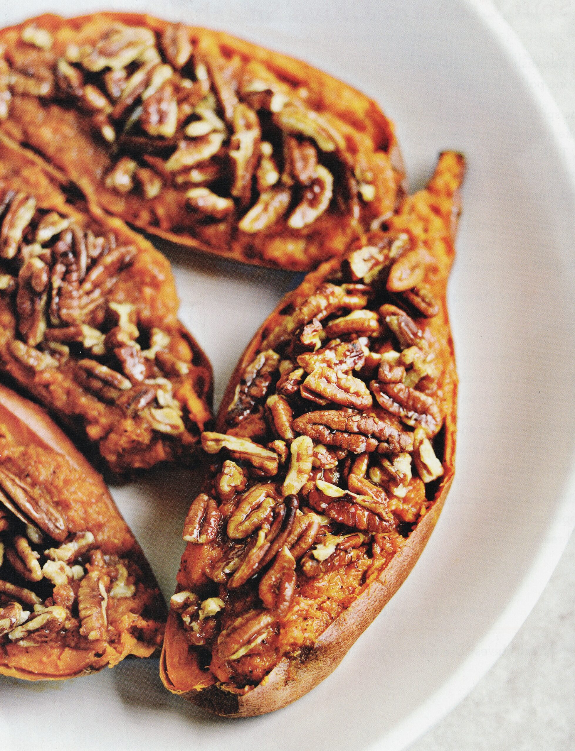 In this recipe “Twice-Baked Sweet Potatoes” from “Simply Scratch” (Avery) by Laurie McNamara, honey-covered pecans are the crowning touch on sweet potatoes, helping to make this side dish one to remember at any special meal.