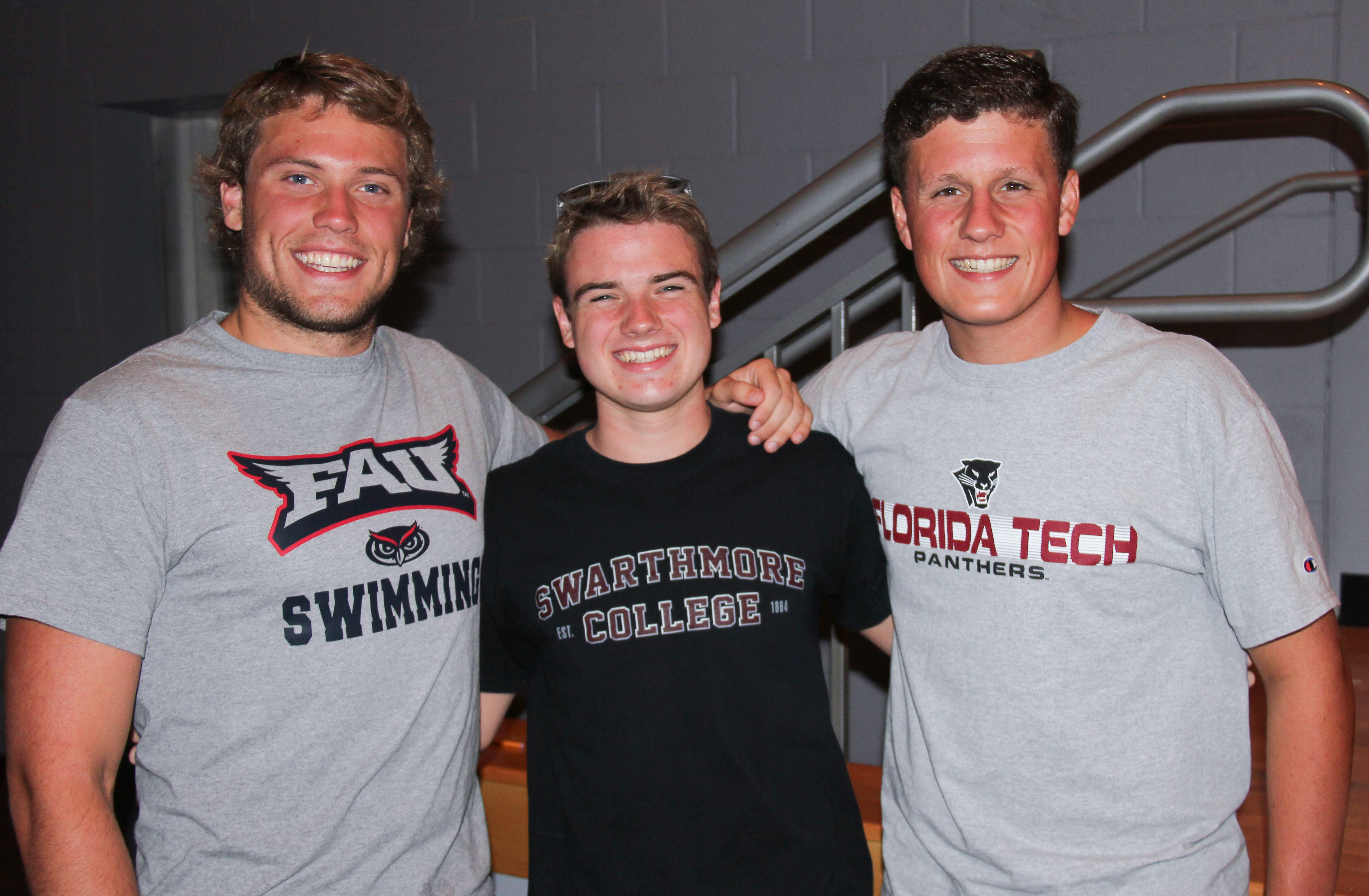 Ethan Chestang, Gabe Caldwell and Lukas Burchianti are former Loggerhead swimmers who now swim at the college level.