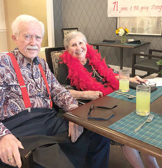 Rex and Norma King just celebrated a milestone wedding anniversary: 71 years! The two met while in high school in Tennessee and married shortly after graduating. Rex enrolled in college at Memphis State and then went to seminary. He took a job as a youth minister at a Presbyterian church in California and while there he earned a doctorate in counseling psychology. Norma was busy raising their children and then becoming an optometric technician who went on to be an office manager for two different eye doctors. Eventually, the family moved back to Memphis to be near Rex’s and Norma’s parents when they became elderly and ill and needed assistance. The Kings retired to a lovely place on the Tennessee River known as Kentucky Lake and lived there until their adult daughters, who lived in Jacksonville, requested that they move to Jacksonville. In 2017 they made the move to be closer to family and have lived at Harbor Chase Senior Living since 2021.