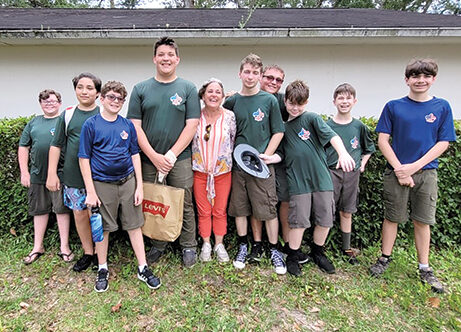 Alex Brodie of Scout Troop 321 funded his Eagle Scout project — to renovate Mandarin Garden Club’s sign and raised bed — with a car wash during the club’s annual plant sale in April. Troop mates assisted and the Masons next door lent parking and hose access. Brodie raised more than enough money for his project. Groundskeeper Janine Smith is pictured with Brodie and the participating scouts.