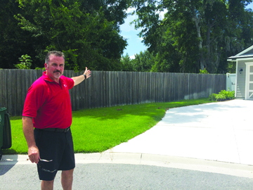 Robert Lambert points out how close the back of retail establishments will be to homes in Sawyer Ridge.
