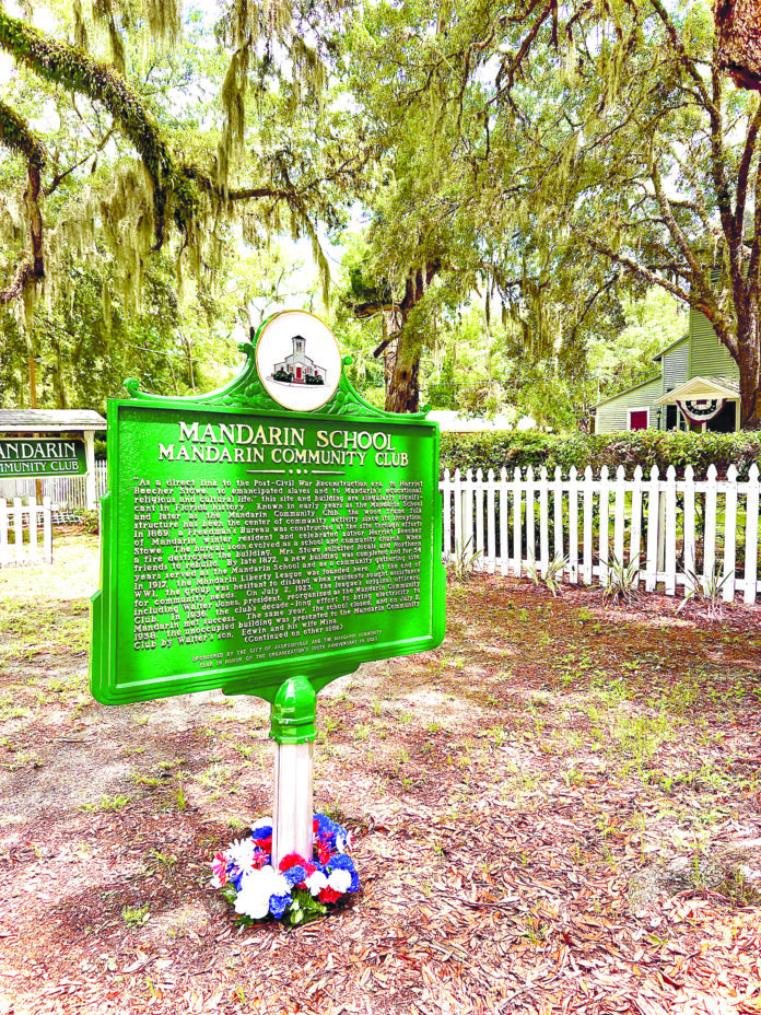The newly acquired historic site marker highlighting the Mandarin School and Mandarin Community Club history in honor of the organization’s 100th anniversary in 2023.