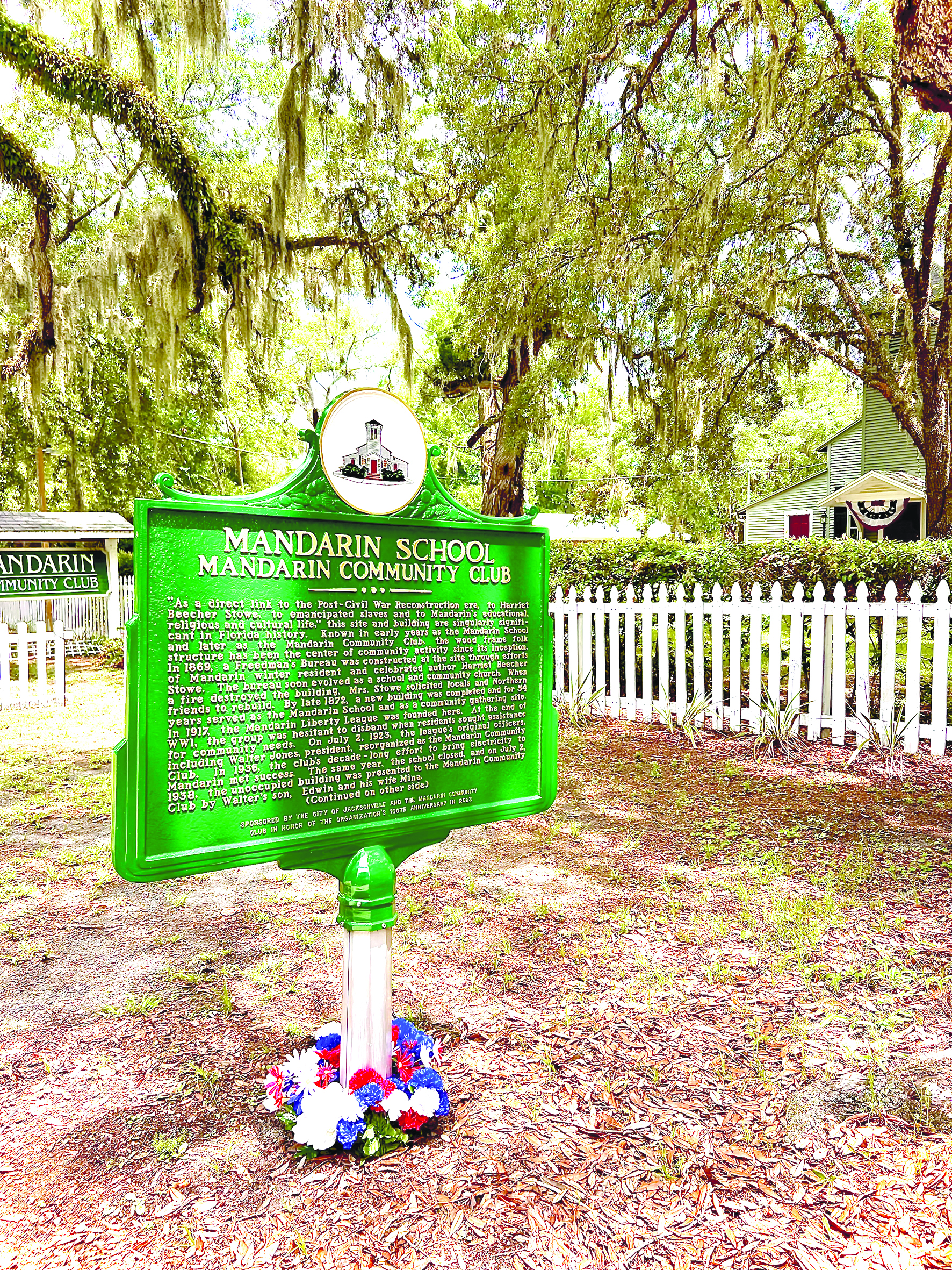 “We’re proud of the club’s accomplishments, the new marker and the story it tells. Both site markers reveal extraordinary Mandarin history. This information will educate residents and visitors and also offer new appreciation for our community,” said Waterman. “I hope Mandarin residents, in particular, will take time to visit the new historic site marker and review the old Stowe home marker in its new location — more closely identifying the old Stowe cottage site.”