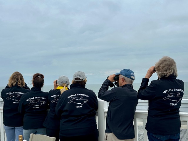 Clad in black “Whale Sighting Team” jackets, the Ambassadors scanned the horizon with binoculars and spotting scopes Tuesday morning. While the celebration was festive, the group’s mission remains serious: protecting the critically endangered species through public awareness.