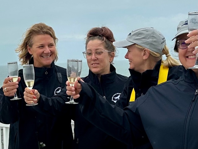 Members of the Amelia Island Whale Ambassadors gathered atop the Seaside Amelia Inn on Tuesday to raise a glass—fittingly filled with champagne—to celebrate the arrival of the first North Atlantic right whale calf of the 2025-2026 season.