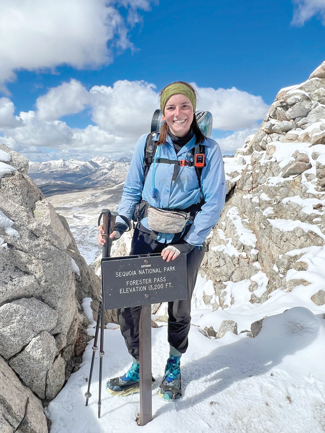 Hallie Murta grew up backpacking in national parks with her father, fully embracing the outdoors and a very active lifestyle with her entire family. When she was 14 years old, she watched a video on how to pack a bag lighter and more efficiently by a woman who happened to be on the Pacific Crest Trail. That location caught Murta’s attention, and she immediately researched the trail. The following year she traveled to Crater Lake National Park in Oregon with her family and found where the Pacific Crest Trail intersected the park. She took a picture by the Pacific Crest Trail sign and made a mental note that she wanted to return one day to hike the trail. Earlier this year, Murta, 22, fulfilled the promise she made to her 14-year-old self, hiking 2,450 miles (she was not able to hike the full 2,650 miles because some areas of Pacific Crest Trail were closed due to wildfires) over five months from May 5 to Sept. 29.