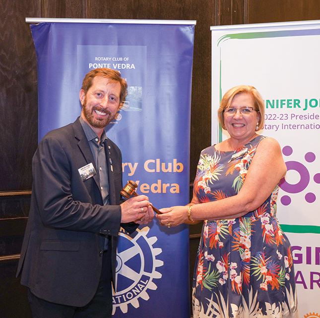 In a tradition as old as the organization itself, the Rotary Club of Ponte Vedra “passed the gavel” from one leadership team to another in July. The swearing-in ceremony took place at Maggiano’s Little Italy restaurant in St. Johns Town Center. The ceremony is significant in Rotary because it transfers the club’s power from one president and board of directors to another.