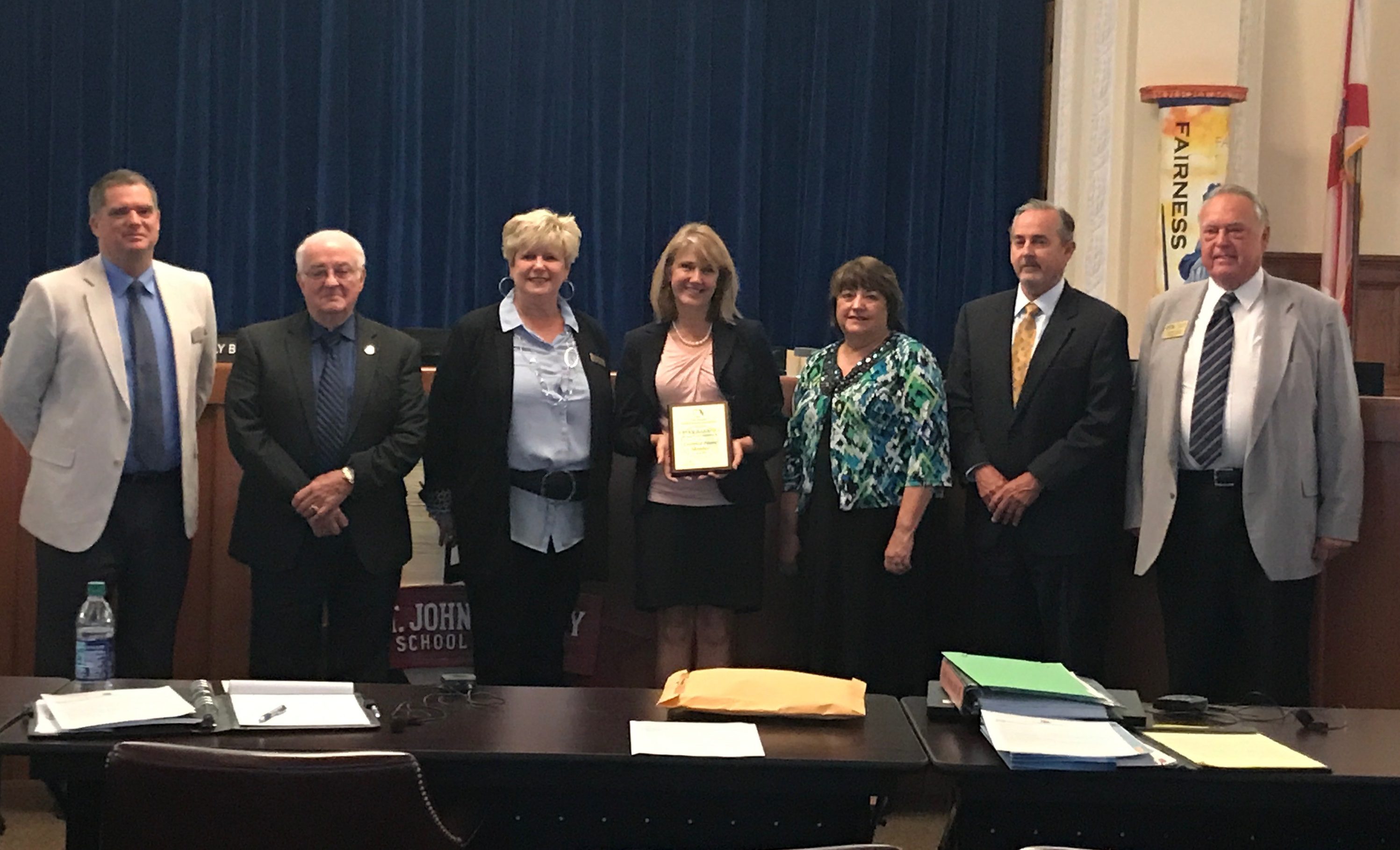 Kelly Barrera was recognized for attaining Certified Board Member status at the St. Johns County School Board meeting, April 10, 2018.