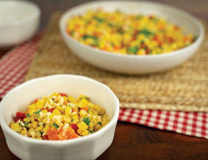 Cheese Corn Salad features a zesty