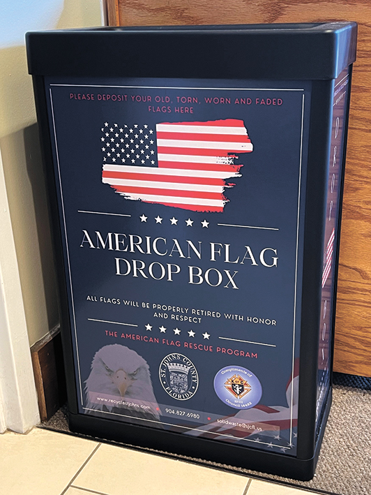 American Flag Rescue Program flag drop-off boxes are conveniently located throughout St. Johns County.