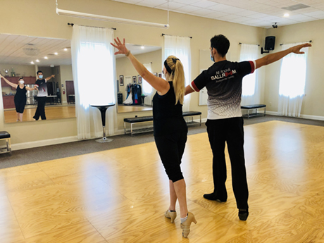 At All About Ballroom in Fruit Cove, manager Zeljko “Jake” Lukich is appreciative of loyal clients who took lessons through ZOOM during the state-mandated closing of businesses. Now, after reopening, the studio provides masks, gloves, and hand sanitizer, taking all precautions recommended by the Centers for Disease Control.
