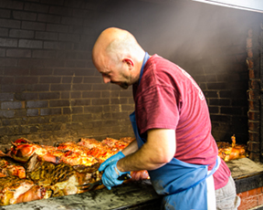 Lexington, NC calls itself the Barbeque Capital of the World. No visit is complete without Lexington style barbeque, made from pork shoulders cooked over hardwood coals. This century-old method involves smoking the pork for hours and then chopping or slicing it, leaving bits of crispy, brown skin. The meat comes with a thin ketchup-and-vinegar sauce called “dip,” a distinctive red slaw, hush puppies, and sweet tea. While the meal is nothing fancy, you’ll find it finger-licking good in all of Lexington’s 15 BBQ restaurants.