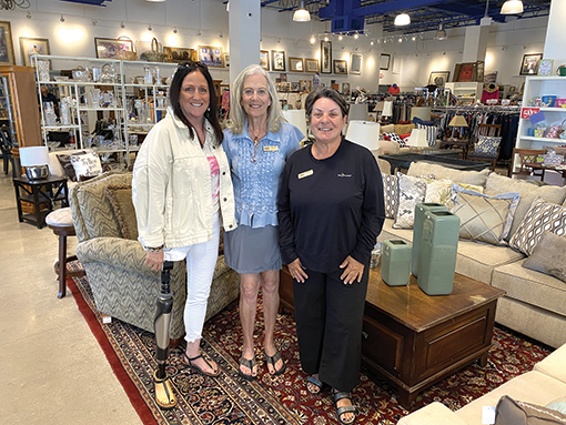 Mary Quinn Shalz, Dottie Gandee, and Gayle Enzel volunteer at 7 North, a BEAM thrift store in Jacksonville Beach.